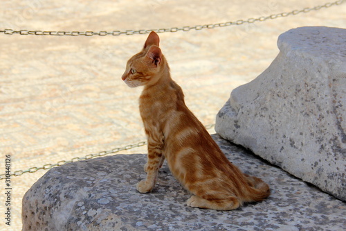 Feral cat on the stones of the ruins of Ancient Ephesus, Selcuk, zmir Province, Turkey
