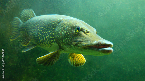 The Northern Pike - Esox Lucius. Underwater photo of predatory fish from freshwater lake. Animals and wildlife theme.