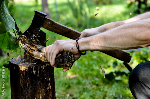 siekiera pień rąbanie drewna drzazgi