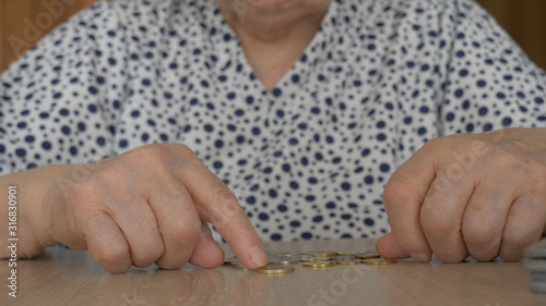 Old woman is counting coins