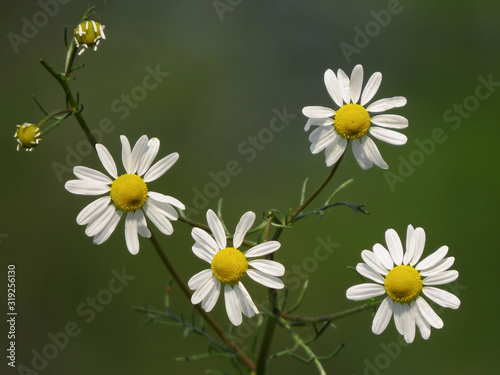 Chamomile (Matricaria chamomilla) or Matricaria recutita, chamomile, camomile, German chamomile, Hungarian chamomile, wild chamomile, scented mayweed, healing medical plant in family Asteraceae