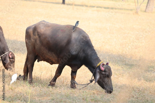 buffalo in dead grassy field