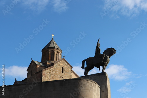 Świątynia Metechi nad rzeką Kurą, pomnik króla Wachtanga Gorgasali, Tbilisi, Gruzja
