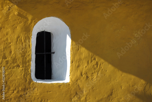 Fenster in gelber Mauer - window in a yellow-painted wall
