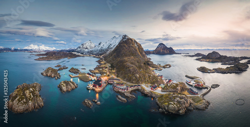 Panorama of Mortsund at Lofoten, Norway