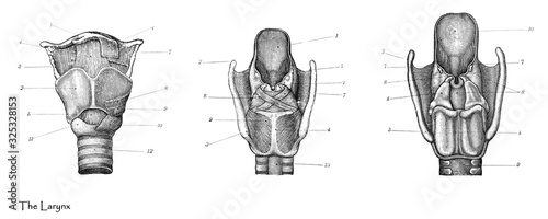 Larynx thyroid gland / Engraved antique illustration from Brockhaus Konversations-Lexikon 1908