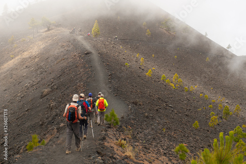 Grupo de senderistas realizando la Ruta de los Volcanes en la isla canaria de La Palma