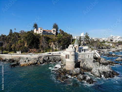 Vista aérea de castillo wullf y palacio presidencial en Viña del Mar, Chile