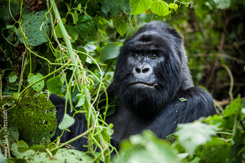 An amazing portrait of an endangered silverback mountain gorilla in wilderness