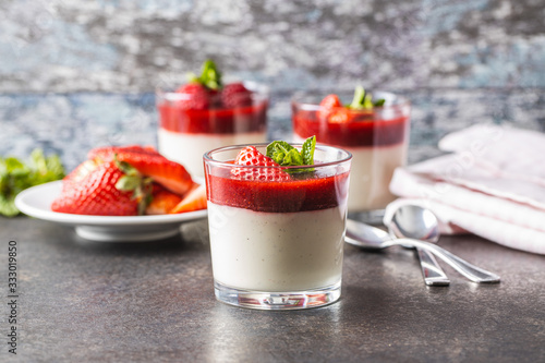 Italian dessert panna cotta with strawberries