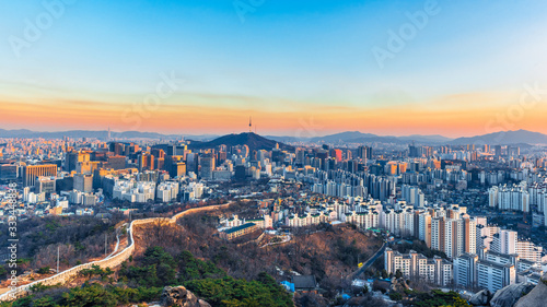 Seoul city and seoul tower at morning. seoul korea.