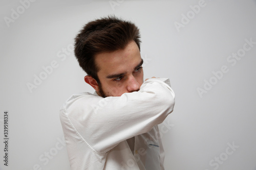 El coronavirus COVID-19 reduce el riesgo de propagación de la infección al cubrirse la nariz y la boca al toser y estornudar con un pañuelo o un codo flexionado