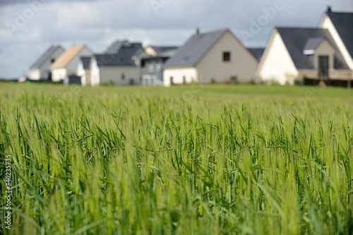 Urbanisation des terres agricoles, lotissement récent en bordure de champ