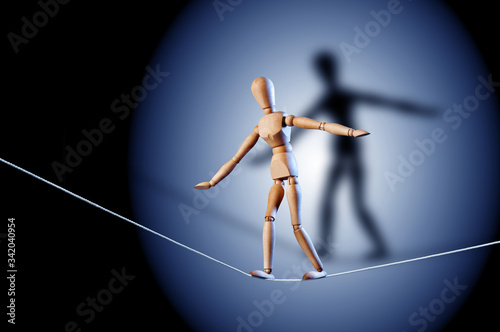 Konzept Foto Ein Mensch bei einem Drahtseilakt