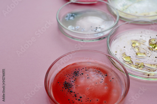 Growth of different bacterial cultures, concept. Bacteriological examination. Harmful and beneficial bacteria,
