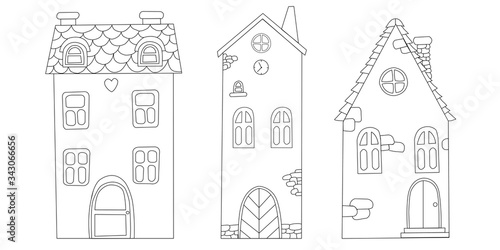 Set of line art houses Black graphic isolated elements for invitations, greeting cards, business card, for fabrics and paper