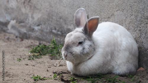 Odpoczywający przy murze królik