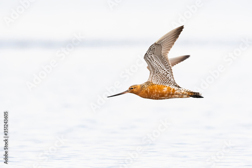 オオソリハシシギ夏羽飛翔(Bar-tailed Godwit)