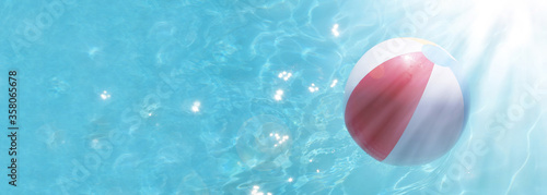Colorful water ball in blue swimming pool, banner, header, headline, panorama