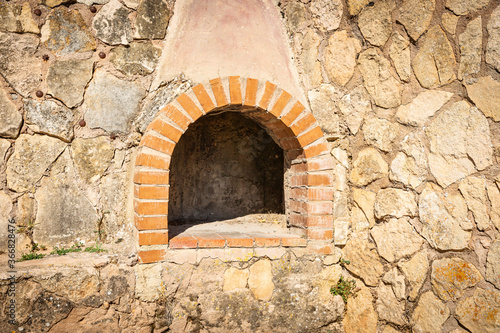 Traditional firewood oven on a stone wall