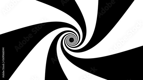 Black and white wide stripes form a hypnotic funnel, computer generated. 3d rendering of dynamic background