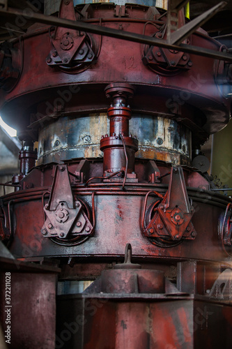 Metallurgy (steel plant) workshop. Close-up of electric arc furnace. Taraz city, Kazakhstan.