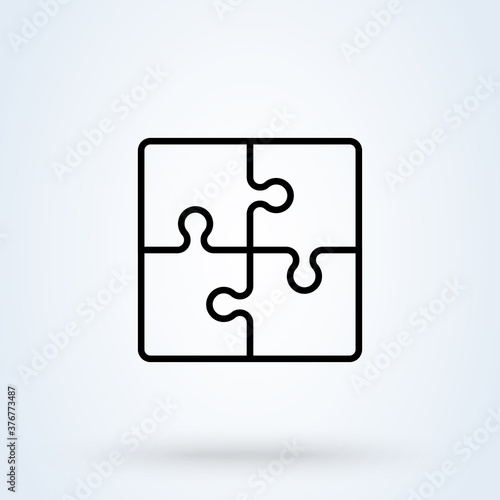 Puzzle pieces and problem solving icon or logo line art style. Outline puzzle game fully editable concept. puzzles and solutions, compatibility illustration.