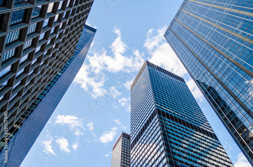 Bottom view of skyscrapers in Manhattan, New York, USA