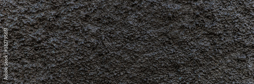 Black panoramic background. Grain black painted wall texture background