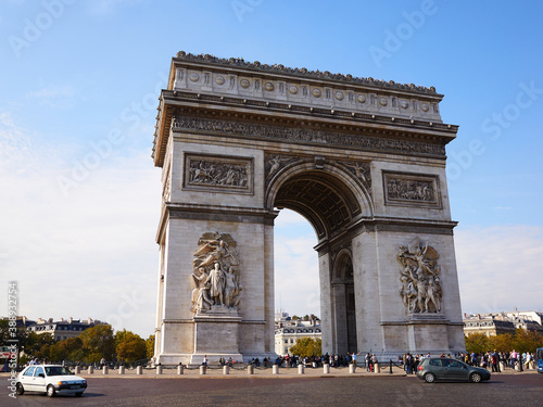 Paris Arc de Triomphe ,Triumphal Arch, place Charles de Gaulle in Chaps Elysees at sunset, Paris, France.
