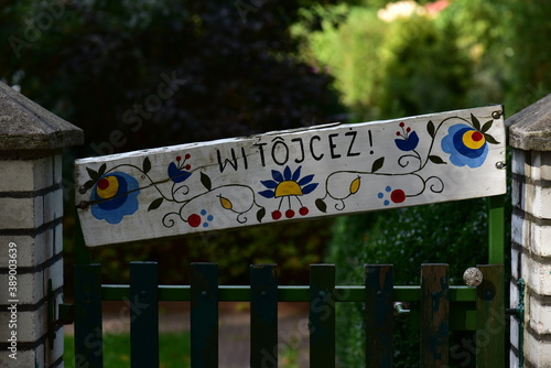 Traditional Kashubian pattern painted on the plank.