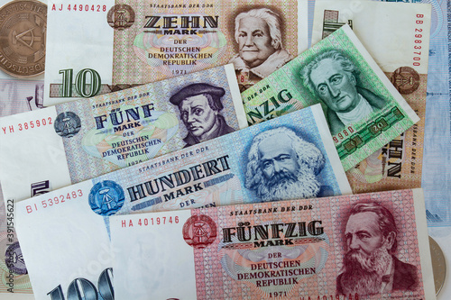 German old currency banknotes and coins