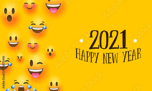 Happy new year 2021 social chat smiley face card