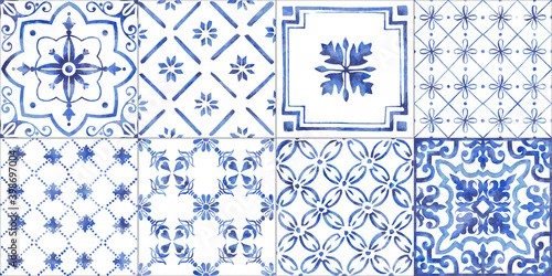 Italian ceramic tile pattern. Ethnic folk ornament. Mexican talavera, Portuguese azulejo or Spanish majolica.
