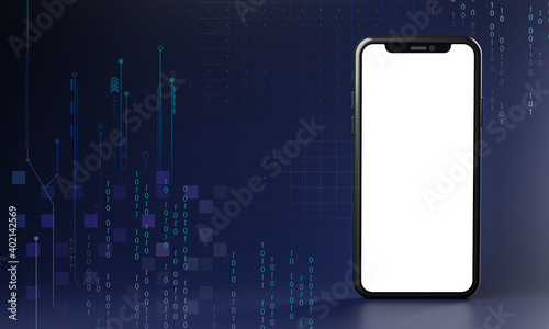 Smartphone Mockup Hologram. Dark Background Technology Concept Copy Space 3D Rendering