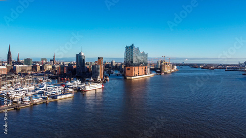 Hamburg harbour on a sunny day - aerial view - travel photography