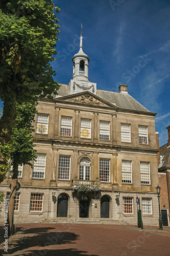 Richly decorated facade in Gothic style of the Brussels City Museum and blue sky, at Grand Place. The vibrant and friendly capital of Belgium.