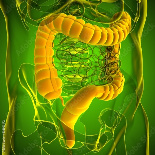 Large Intestine 3D Illustration Human Digestive System Anatomy
