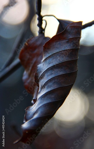 Wysuszony liść z widoczną narwacją