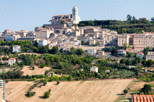 Fermo. Panorama della città nel contesto rurale estivo con il Duomo sopra la città.