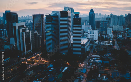 Modern downtown of big megapolis at dusk