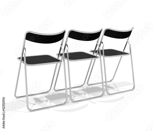 3台のパイプ椅子を斜め後ろから見た3dレンダリング