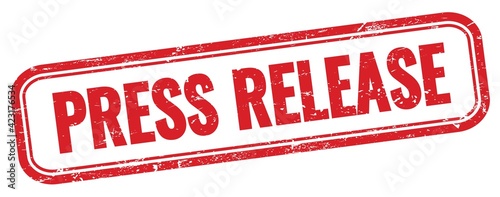 PRESS RELEASE text on red grungy vintage stamp.
