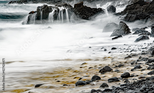 Langzeitbelichtung von Steinen im Wasser, Madeira, Insel in Portugal