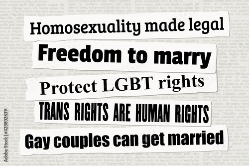 Gay rights media titles - newspaper headlines with LGBTQ titles