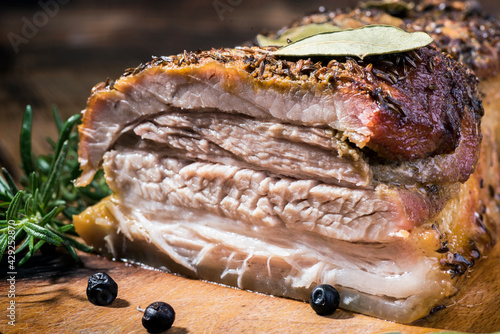 boczek, jedzenie, posiłek, obiad, gril, dania, barbecue, wieprzowina, palona, piec, gotowanie, smażone, delikatesowy, lunch, przepyszny, knajpa, pieczone