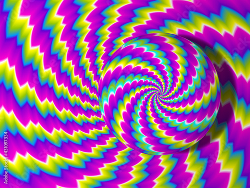 Colorful rainbow background with rotating sphere. Spin illusion.