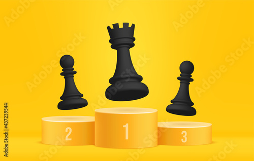 Chess on winners podium, Business leader concept, Leadership of business strategy and management on minimal background