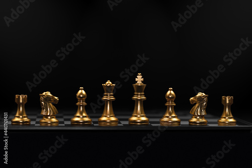 Row of Chess piece used in playing the game of chess. Business play role stand for strong teamwork ready for fight concept.