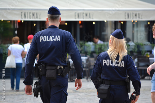 Polska policja na zabezpieczeniu zgromadzenia Wrocław Rynek.